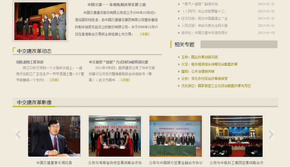負(fù)責(zé)中國交建專題頁面的設(shè)計制作,該頁面以黑色為主色調(diào),加以棕、黃為點綴加以突出,符合企業(yè)特點,體現(xiàn)企業(yè)沉穩(wěn)、安全、實力雄厚。整個設(shè)計,簡潔,大方,彰顯企業(yè)實力。