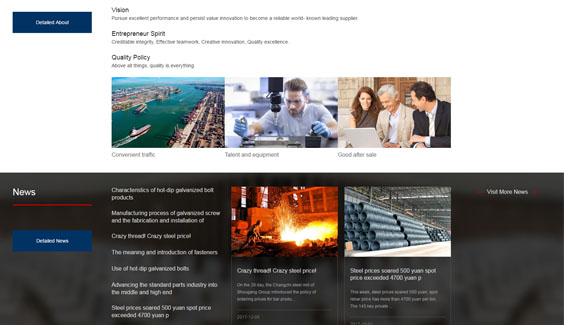 負(fù)責(zé)邯鄲市倚道金屬制品有限公司網(wǎng)站建設(shè)的全體服務(wù),包括:網(wǎng)站設(shè)計(jì)、制作開(kāi)發(fā)、域名空間等網(wǎng)站建設(shè)服務(wù)。因網(wǎng)站是做外貿(mào),故網(wǎng)站語(yǔ)言為英文,網(wǎng)站建設(shè)特點(diǎn)也也參考?xì)W美風(fēng)格進(jìn)行設(shè)計(jì)制作,全站采用div+css構(gòu)架網(wǎng)站結(jié)構(gòu),并對(duì)于各個(gè)細(xì)節(jié)做了詳細(xì)優(yōu)化,使代碼更精簡(jiǎn),為企業(yè)后期進(jìn)行網(wǎng)絡(luò)營(yíng)銷做好前提基礎(chǔ)。
