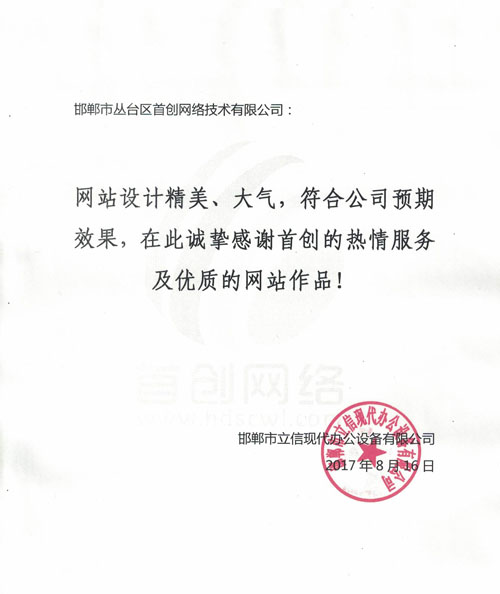邯鄲市立信公司對我公司評價